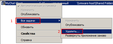 В контекстном меню пакета выберите "Все задачи" — "Удалить":